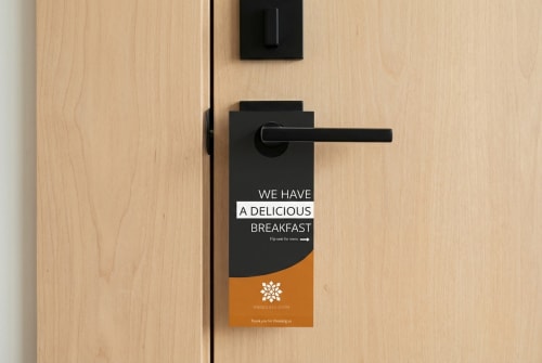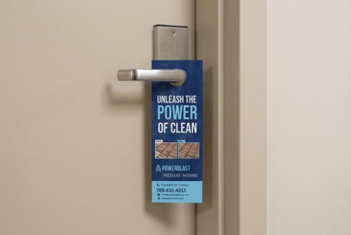 A door hanger is a printed marketing piece that hangs on a door handle, typically shaped with a die-cut hole or slit at the top. It’s often used for direct outreach in residential areas, apartment buildings, or commercial settings. Door hangers are effective for delivering targeted messages without needing postage or permits, especially for services, promotions, or announcements that benefit from neighborhood-level exposure.
